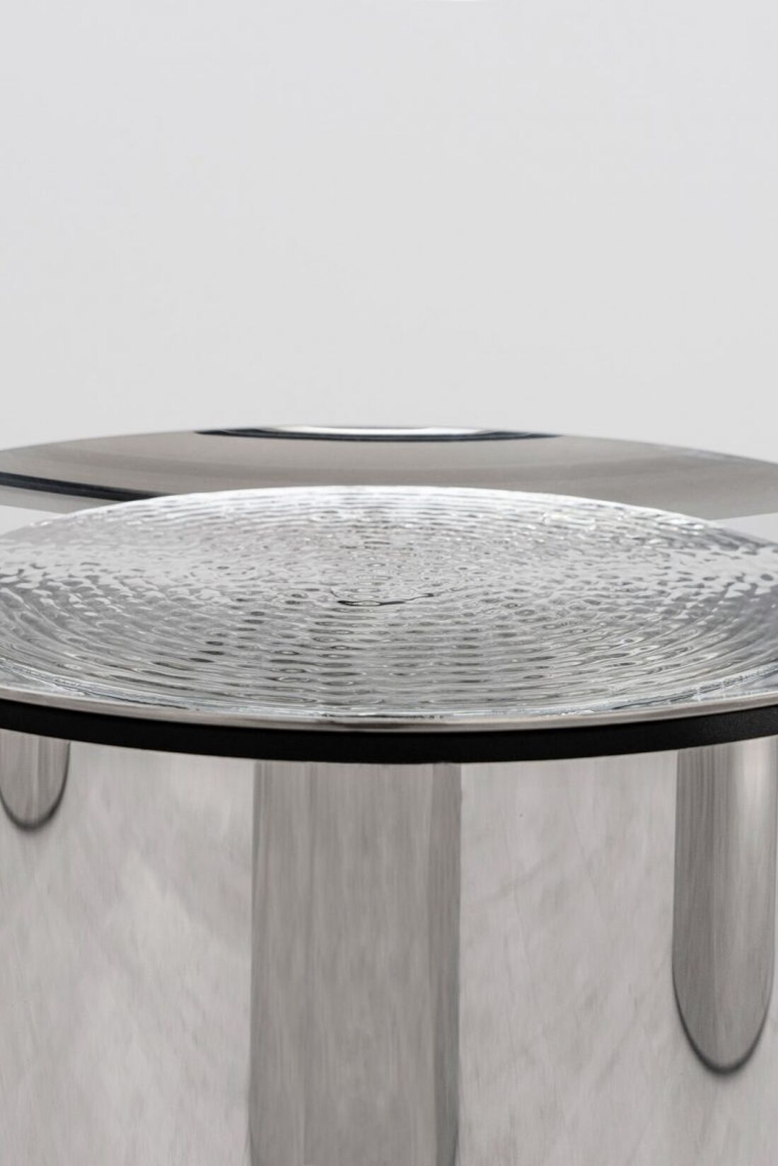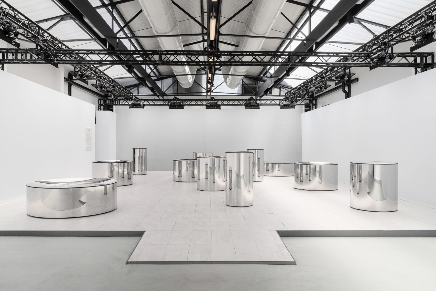 “Shaped by Water” featured mirrored stainless-steel basins filled with water, each vibrating at specific resonant frequencies to create unique wave patterns.