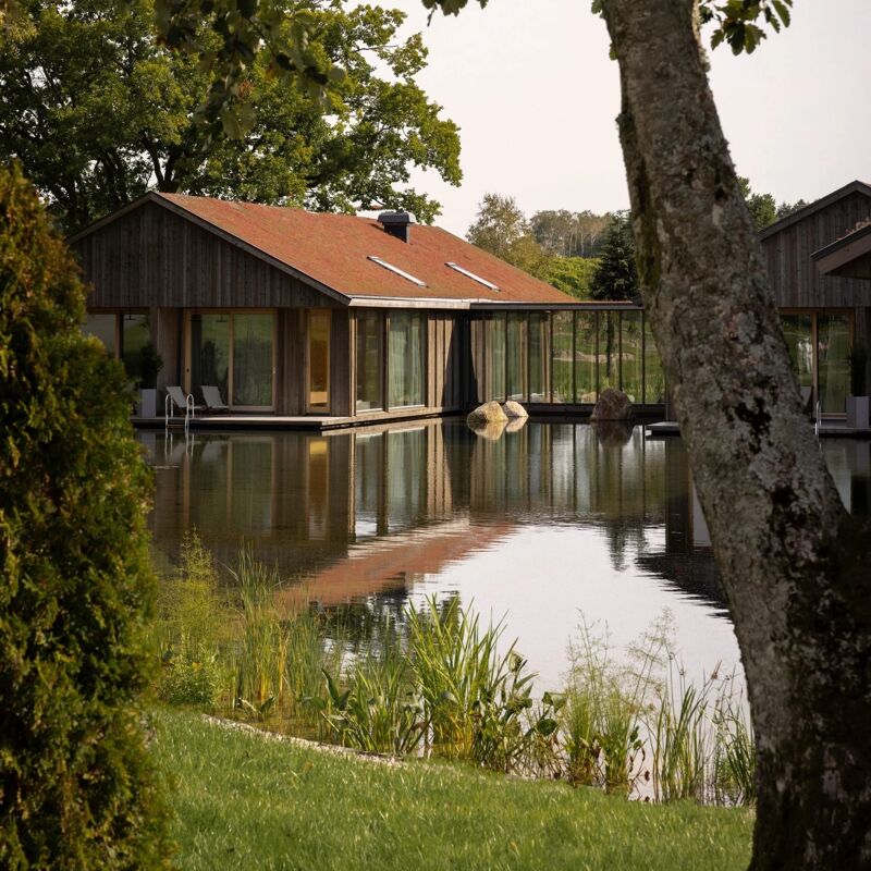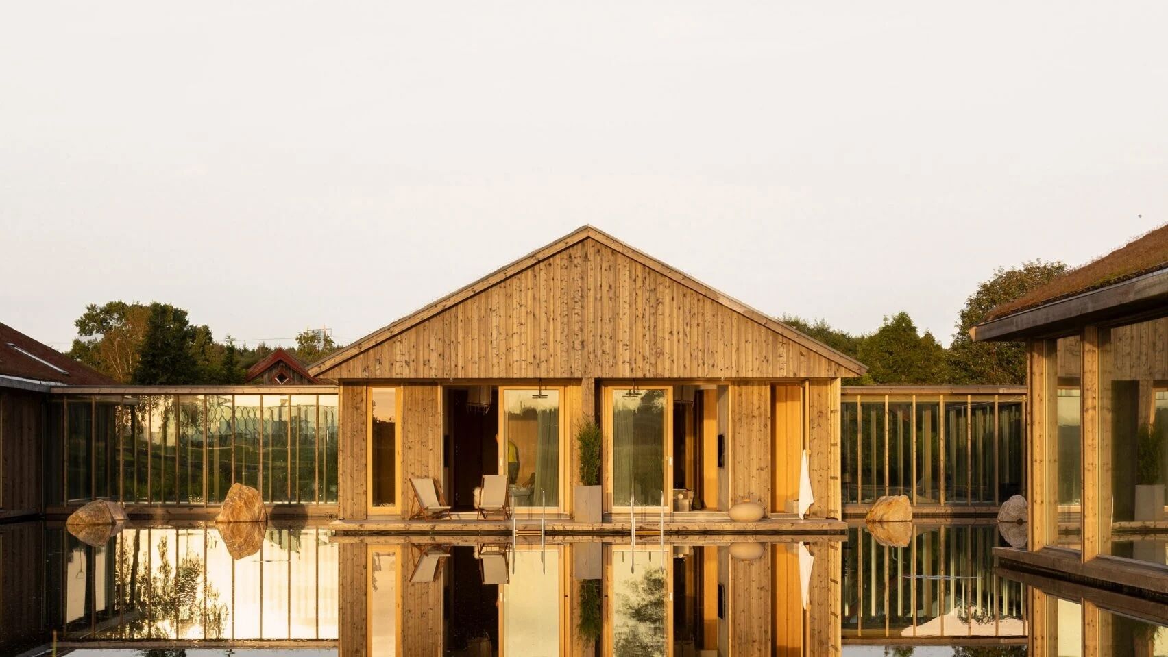In Sweden, Danish firm Norm Architects created a “floating village” for the Sjöparken gastro-tourist retreat. Inspired by Nordic and Japanese architecture, the complex, which houses Sweden’s largest producer of sparkling wine and a Michelin-star restaurant, centers around water elements.